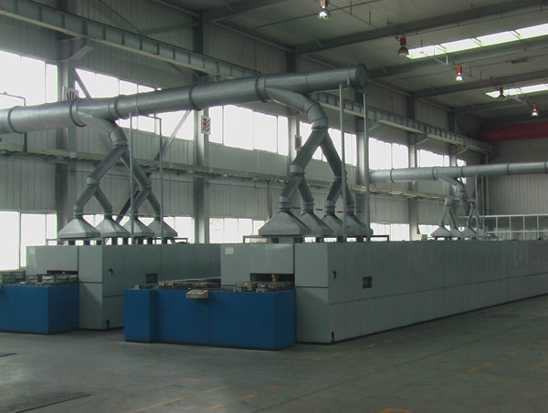 6.2、電窯外壁裝卸掛板(高溫區(qū)兩側(cè)加纖維棉毯)采用耐高溫粉末涂料靜電噴涂。