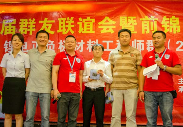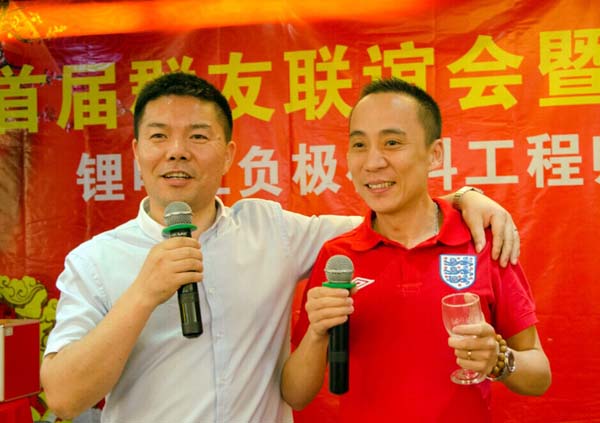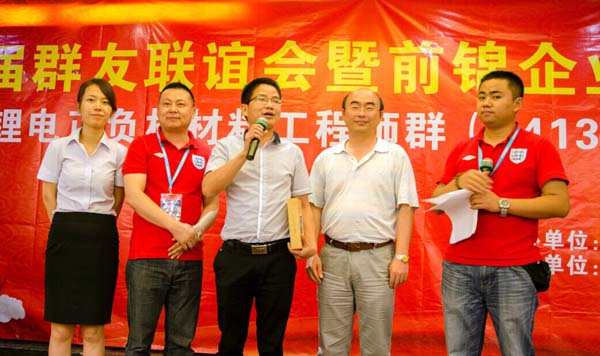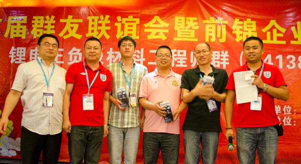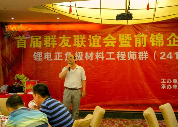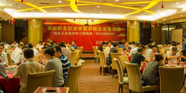 | 2014年6月19日晚18:30首屆鋰電正負極材料工程師群( 241388010)群友聯(lián)誼會暨前錦企業(yè)答謝會在深圳楚天大酒店龍鳳廳順利召開。鋰電正負極材料工程師群建立于2013年4月份,群主由江蘇前錦爐業(yè)劉俊擔(dān)任,截止2014年6月份共加入658名群友,報名參加聚會人數(shù)112人,實際聚會到場人數(shù)136人,這一次聚會匯集了以中南大學(xué)胡國榮老師、有色院劉博士、重慶材料研究院唐老師等為代表的科研界嘉賓們和廣州國光電子、湖南匯博、河南科隆、寧波艾能、江西江特鋰電、廣鋼集團、天驕集團、中信國安、江門科恒、四川興能、廈門首能等企業(yè)代表們以及不遠千里從各地趕來的群友們。